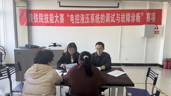 2025年11月12日下午2点,陕铁院第二十届技能大赛“电控液压系统的调试与故障诊断”赛项决赛在临渭校区实训楼S306顺利开展。