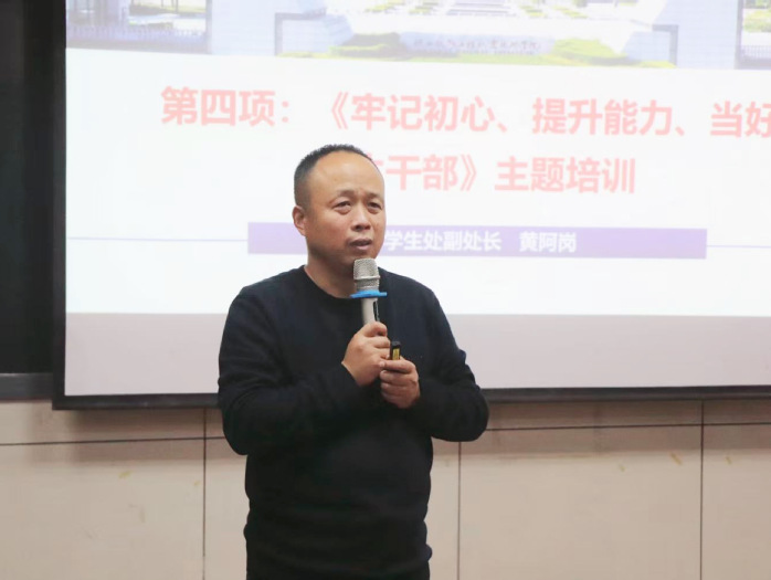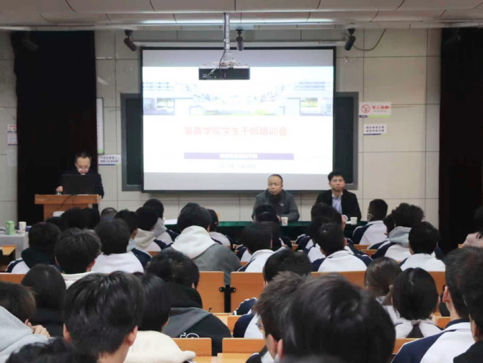 11月18日下午,铁道装备制造学院在B100举行装备学院学生干部培训会。会议特别邀请学生处副处长黄阿岗担任主讲。学院党总支书记冯上朝、学工办主任王力、全体辅导员以及学院各团学组织学生干部、各班班团干部参会。