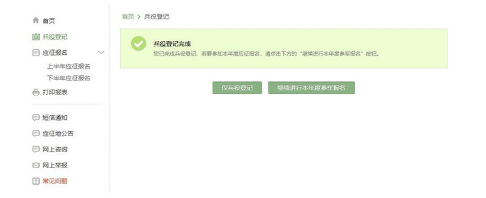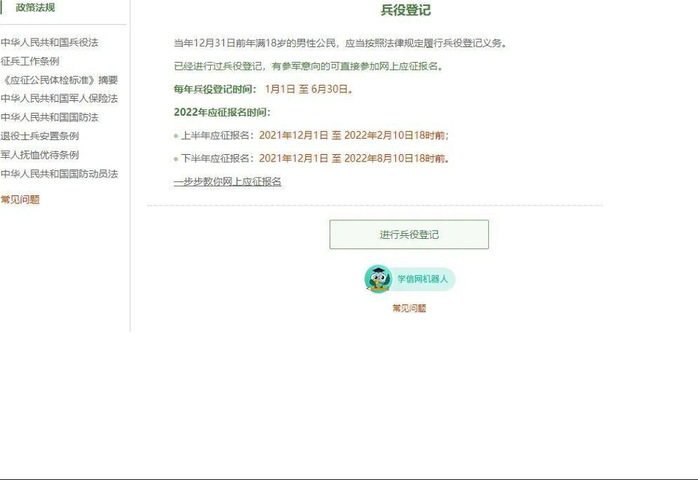 在这个页面中,会告知我们报名时间以及参军的政策说明,建议看后,点击进行兵役登记