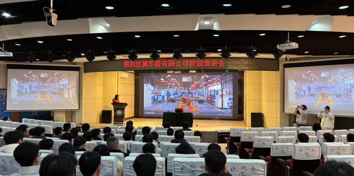 2026年1月15日下午,铁道装备制造学院邀请陕西汉德车桥有限公司走进临渭校区,在学术报告厅成功举办专场宣讲会,宣讲会上,企业代表围绕公司发展历程、行业优势、岗位需求展开详细介绍,结合铁道装备制造相关专业特色,解读了岗位技能要求与薪酬福利体系,现场解答了同学们关于实习安排、晋升通道等疑问。随后于B118、B120同步开展现场面试,意向学生有序参与面试。