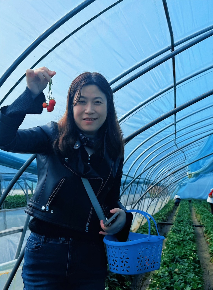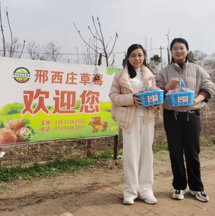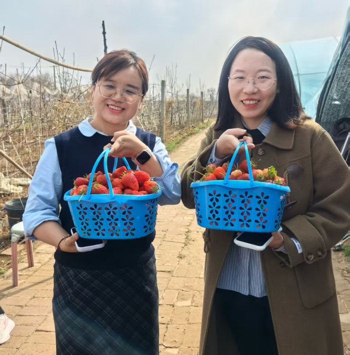 春日暖阳下,大棚里绿意盎然、生机勃勃。女职工们手提果篮,穿梭于田垄之间,精心挑选着红艳饱满的草莓。大家一边采摘品尝,一边拍照留念,欢声笑语此起彼伏。红彤彤的果实与粉白的草莓花相映成趣,为节日增添了几分田园诗意。活动中,大家互帮互助、分享喜悦,既放松了身心,又增进了情谊。