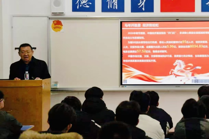 班会立足国家发展大局与铁路行业前沿,深入解读经济发展、科技赋能等时政热点,重点讲解AI智能技术发展与应用,结合春晚科技应用实例,引导学生感受科技创新赋能时代发展的强劲动能。同时,围绕我国铁路网扩容升级、智能高铁领跑世界等行业成就,阐释个人成长与国家发展、行业进步的紧密关联。班会全面回顾学校2025年竞赛获奖、校企合作等办学成果,并对新学期学生管理、校园安全等重点工作作出部署。