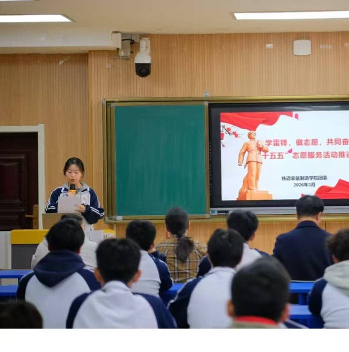 铁道装备制造学院在临渭校区B500召开“学雷锋、做志愿,共同奋进‘十五五’”志愿服务活动推进会。学院党总支书记冯上朝、院团委负责人、全体辅导员及各班团、社团负责人参会。