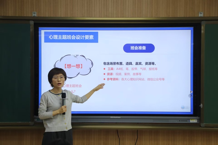 培训过程中,任林林老师围绕心理主题班会的设计思路、流程规划、内容选取、互动形式等核心内容展开细致讲解,结合实际案例分享班会策划技巧与实操方法,帮助参会人员理清工作思路,掌握专业的心理班会组织技能。
